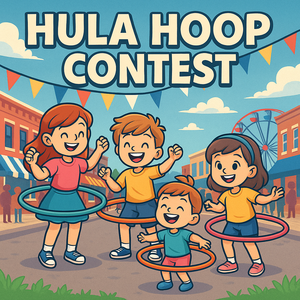 Spin to win at the Hula Hoop Contest! Two age groups compete to see who can hoop the longest — fun, prizes, and wiggly fun for all!